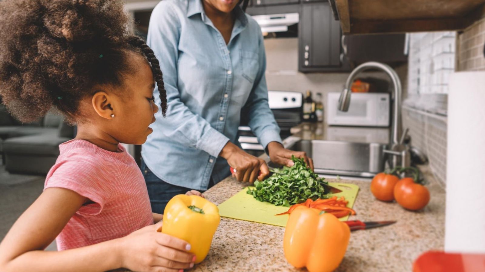 Los niños aprenden haciendo y es más posible que prueben las comidas que ellos ayudaron a hacer. Tareas fáciles como poner servilletas en la mesa, cortar hojas de lechuga o quitar las uvas de los tallos, es bueno para las pequeñas manos.