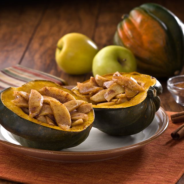 - Mezcle en un recipiente pequeño la manzana, margarina, azúcar y las especies. Cubra las calabazas de bellota o calabazas de acorn con la mezcla y tape con papel encerado o con una servilleta.