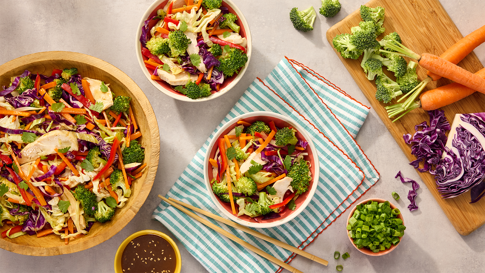 • ½ taza de aderezo asiático o de ajonjolí, bajo en grasa