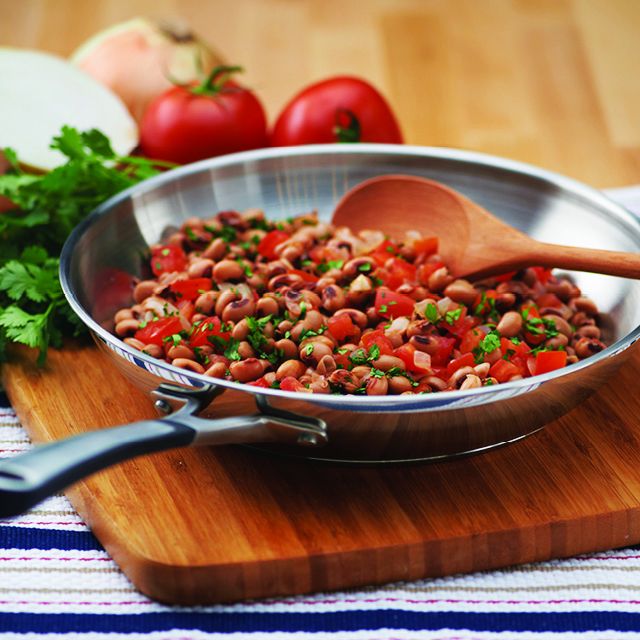 - Mezcle con los tomates y el frijol ojo negro.