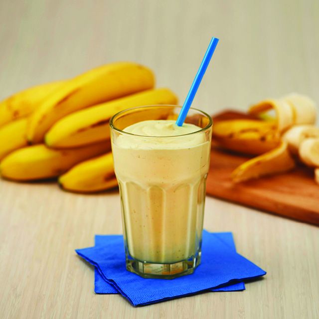 2. Combine la leche desgrasada, el plátano y la leche en polvo en el vaso de la licuadora.