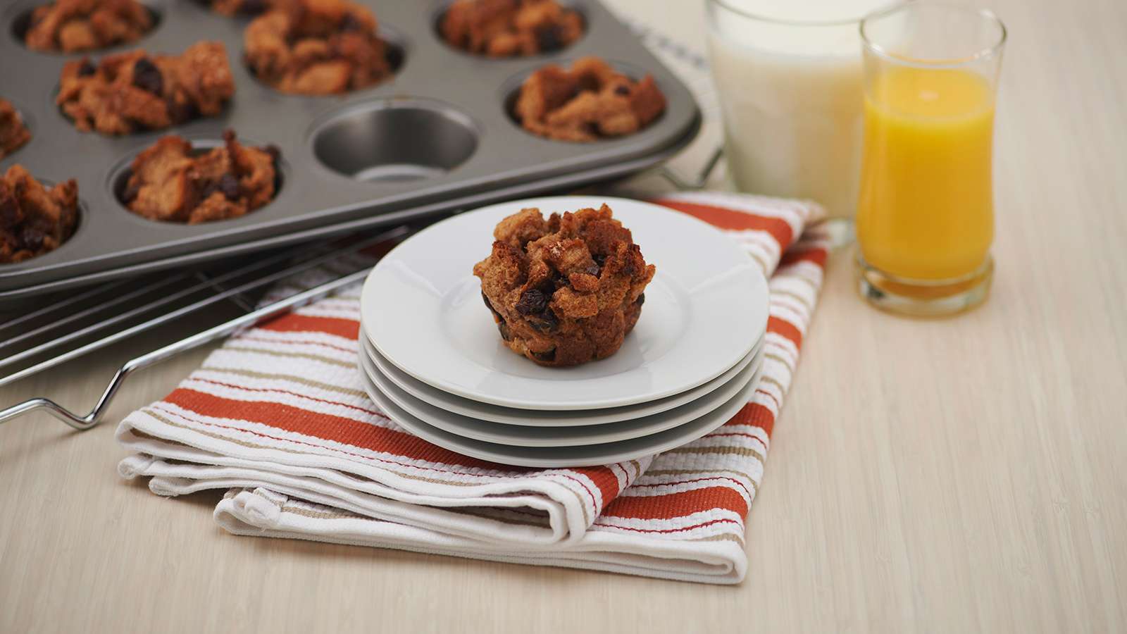 - Rocíe un molde estándar para panecillos o 12 moldes individuales con aceite en aerosol.