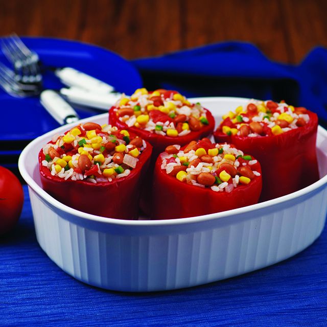 - Eche el relleno en los pimientos preparados y póngalos en un molde para hornear.
