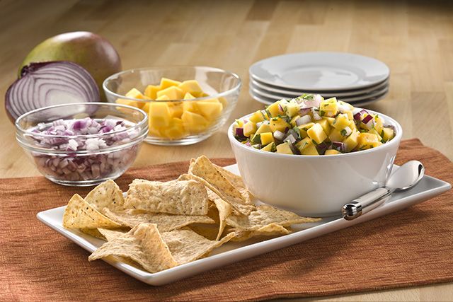 40 calorías, 10 g de carbohidratos, 0 g de proteínas, 0 g de grasa total, 0 g de grasa saturada, 0 g de grasa artificial, 0 mg de colesterol, 1 g de fibra, 8 g de azúcar total, 150 mg de sodio, 9 mg de calcio, 10 mcg de ácido fólico, 0.10 mg de hierro y 0% de calorías de grasa.4 porciones (de ½ taza cada una). Receta proporcionada por Nutrition.gov
